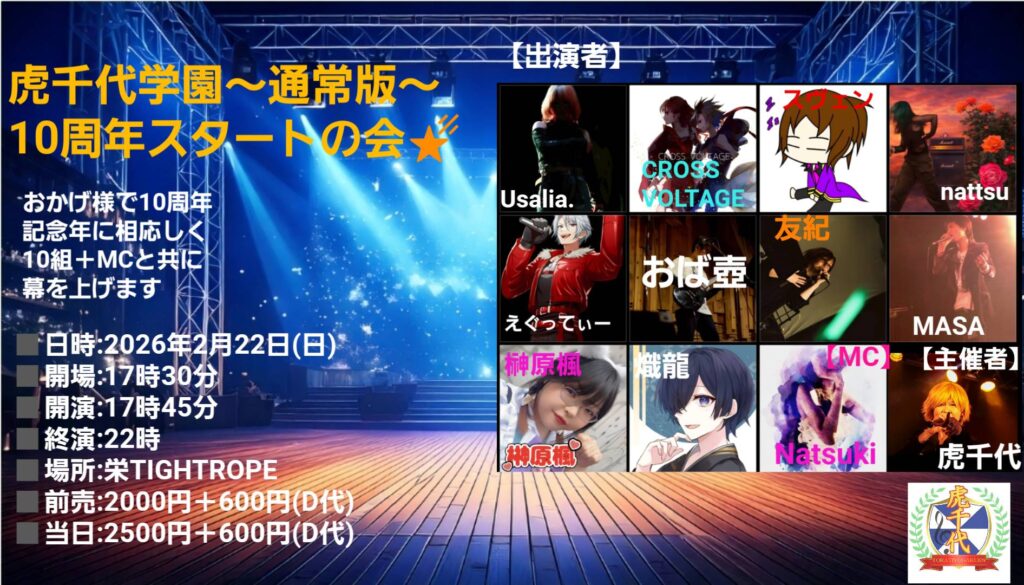22日(sun) <夜公演> 虎千代学園~通常版~10周年スタートの会★彡