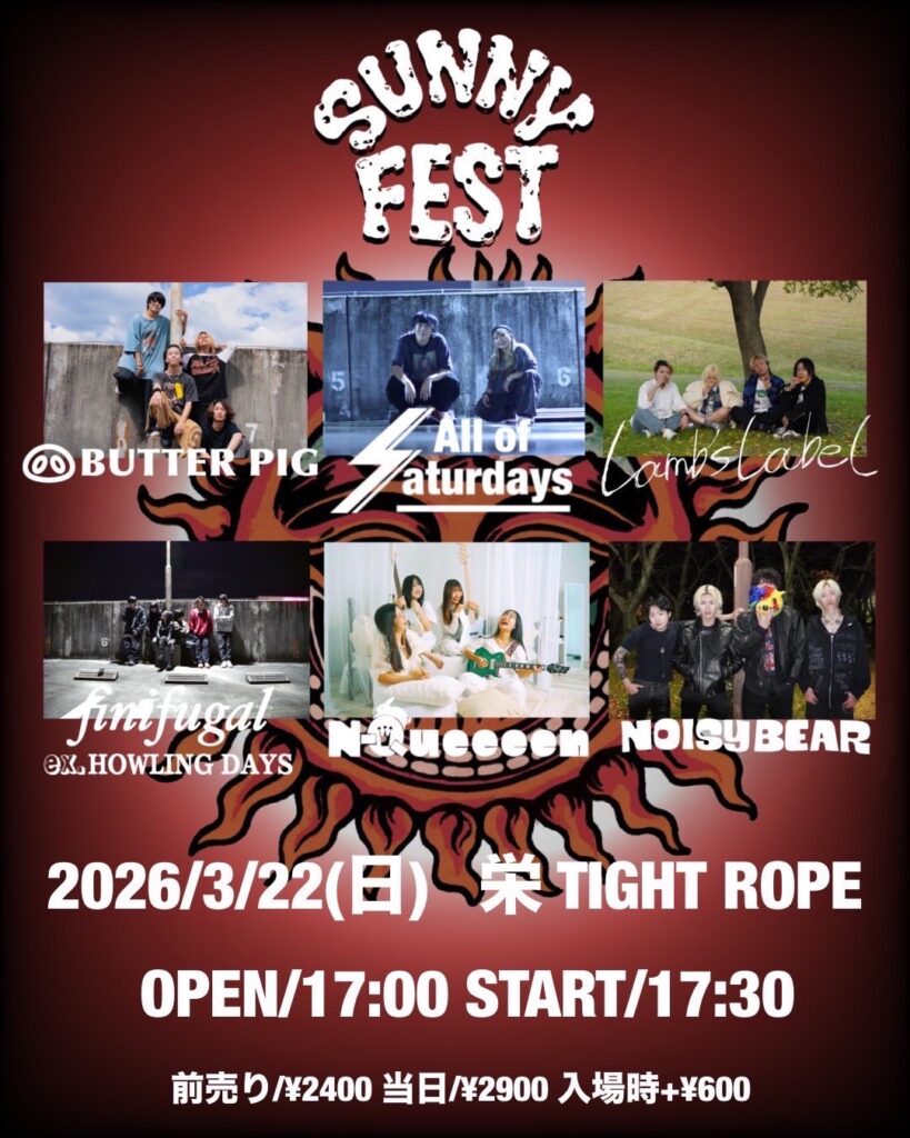 [ACT]All of Satdays / BUTTER PIG / Lamb’s Label / funifhugal ex. HOWLING DAYS / N-Queeeen / NOISY BEAR